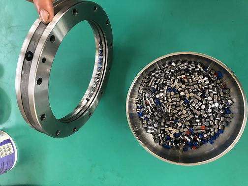 1.RU系列精密交叉滾子軸承,該系列屬于內(nèi)外圈整體結(jié)構(gòu),依靠?jī)?nèi)圈外圈的安裝孔來定位,內(nèi)徑公差,外徑公差都在0.01毫米內(nèi),端面跳動(dòng)基本都小于0.005毫米,游隙在-0.005-0之間。